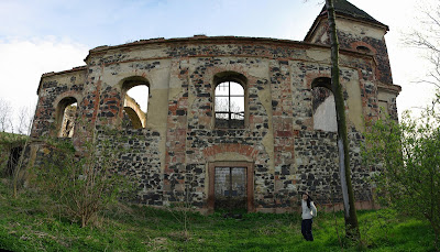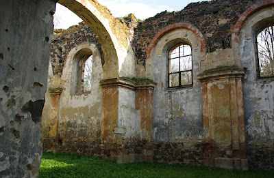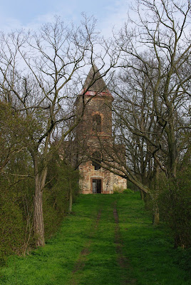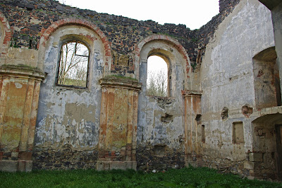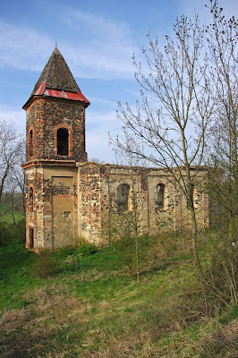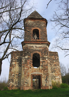 Jak jsem již psal, našel jsem cestou do Krásného Dvora zajímavější cíl. Staly se jím zbytky kostela sv. Michaela v malé obci Zlovědice nedaleko Krásného Dvora. Chmelařská ves Zlovědice je zmiňována již kolem roku 1356, kdy ji pravděpodobně držel Bušek ze Zlovědic. Roku 1546 se zde prvně připomíná tvrz, která později zanikla během třicetileté války a v dnešní době již po ní nezůstaly žádné stopy. Stojí zde tedy jen zbytky barokního kostela sv. Michaela z roku 1750. Je to opravdu krásný kostelíček s přístupovou cestou se stromořadím. Ve věži kostela je možné spatřit dřevěný mechanismus zvonice a zbytky schodiště, v oknech pak místy ještě dřevěné rámy oken a největší skvost pak na střeše věže. Na ní totiž můžeme pozorovat původní krytinu, dnes již doplněnou plechem.