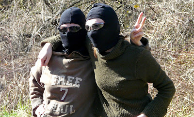 Kamarád Jirka dal minulý týden dohromady 14 člennou partičku lidí a společně jsme v neděli dopoledne vypravili do Velichova u Karlových Varů, kde na nás čekalo bojiště, masky a zbraně. Klub Chegevara zde má pronajato několik starých obejktů (zřejmě bývalý hamr či něco podobného) a pořádá zde paintballové srrazy. Tento prostor včetně vybavení pak pronajímá i jakýmkoli zájemcům. Ráno jsme tedy vytvořili kolonu aut a oděni do maskáčů, monterek a podobných modelů jsme vyrazili na místo. Pán na nás trošku zapoměl a tak jsme na něj hodinku čekali. Mezitím se představily kapitánky obou týmů ve svých kuklách ala URNA a poté se oddávaly slunečním paprskům. Chlapská část pak zkoumala budoucí bojiště a jeho objekty. Nakonec dorazil i pronajímatel a všechno mohlo začít. Jak popsat samotný děj?! Velice těžko. Svítí na vás sluníčko, jste celí zahalení a na hlavě máte masku. V ideálním případě se Vám do ní nepodaří dýchnout a zamlžit si sklo. Mě se ovšem několikrát zamlžilo jak sklo helmy, tak i brýle:) Běháte a ve strachu z rány, kterou Vám někdo uštědří, střílíte o sto šest. Kdo ještě nkdy nehrál paintball, tak ať mi věří, žže rychlost kuličky (100m/s) není opravdu nejmenší a z méně než 5m bych to opravdu koupit nechtěl! Sám jsem dostal jen jednu bolestivou ránu do ledvin, která mě bolela ještě cestou domů a celý zbytek odpoledne, ale kapitánka mého týmu na tom byla podstatně hůře. V zápalu boje dostala ránu do nohy z metrové vzdálenosti a během několika minut se jí na noze objevil nehezký černý flek velikosti pětikoruny. Co říci závěrem? Byla to paráda. Ze začátku to člověk bere jako zábavu. Když vidí, jakouu sílu má letící kulička, tak se to promění v obrovský strach ze zásahu a nakonec Vám tepe srdce nezměřitelnou rychlostí, svírá se Vám žaludek, pobíháte od jednoho okna k druhému a množství adrenalinu je takové, že by se ho vyplatilo vyvážet do zahraničí:) Škoda, že v posledním kole, kdy jsem se dostal do té pravé nálady vojáka ve Vietnamu a podařilo se mi zastřelit 3 ze 7 protihráčů a nakonec se dostat do objektu, kde už mě čekal jen boj jednoho proti jednomu o vlajku, netrpěliví postřílení začali troubit a ukončili tak hru. Mohl jsem se vrátit s vlajkou v ruce, s vítězným pokřikem a soupeřovým srdcem vyrvaným z těla:))) Už se těším na příště!