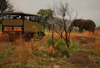 Z Karoo do Pilanesbergu jsme jeli cele odpoledne a celou noc. Vyrazili jsme kolem třetí hodiny a do Pilanesbergu jsme dorazili kolem 6 hodiny ráno, když zrovna otvírali. Cesta byla velice úmorná, protože na silnici byla spousta uzavírek, a tak jsme každou chvíli stáli na nějakých semaforech a čekali. Pilanesberg National Park se nachází asi 1,5 hod. jízdy od Johanesburgu a obklopuje město Sun City, což je takové malé Las Vegas pro turisty. Ráno jsme rychle rozbalili stany a dospávali noční cestu. Po vyřízení všech vstupů, zaplacení ubytování a seznámení s možnostmi parku jsme se vydali na první projížďku parkem. Venku bylo zataženo a nakonec se spustil i vydatný liják, který vytvořil ze štěrkových cest místy obtížně sjízdný terén. Všude stály louže a valila se voda. Jeden z můstků na cestě voda dokonce přetékala. V Pilanesbergu jsme poprvé uviděli slona, který si to štrádoval podél cesty a nakonec i po ní. Kromě slonů jsou tu samozřejmě zebry, žirafy, pakoně, impaly, vodušky, nosorožci atd. Večer se nám podařilo objevit i skupinku dvou mladých lvů. Na místo, kde jsme je spatřili jsme se vydali hned druhý den ráno a udělali jsme dobře. byli stále na stejném místě, protože tu v křoví měli uloveného pakoně. Mé první setkání se lvem bylo opravdu úchvatné. Stál uprostřed silnice a vůbec nevěnoval pozornost autům okolo. Nejprve mě překvapila jeho velikost. Připadá mi, že v zajetí jsem ještě takhle velkého lva neviděl. Stáli jsme od něj asi 3m a on se s nadhledem rozhlížel po okolí. Krásné a majestátné zvíře. Titul krále zvířat má zaslouženě. ten samý den jsme tu konečně objevili i spoustu nosorožců a podnikli první nákup suvenýrů v Pilanesberg Center, což je malý obchod s restaurací uprostřed parku. Během prvního dne nám promokly stany a věci v nich, takže jsme si všechno sušili v sušičkách a méně odvážní se na noc uchýlili do auta. V kempu jsme si poprvé během cesty také grilovali. Sortiment masných výrobků je sice jiný než u nás, ale klobásy jsou stejně výborné. krajina je v Pilanesbergu úplně jiná než v Karoo. Je zde více zeleně, stromů, jsou zde jezera a potoky. Přivážím si odsud vyřezávané masky a jednu poznávací značku, kterou jsme objevili na cestě:) Po dvou dnech v Pilanesbergu jsme se vydali k dalšímu cíli, kterým se stal asi nejznámější park v JARu, tedy Kruger National Park. Od Pilanesbergu je vzdálený asi 500km a o něm až zase v příštím článku.